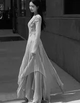 刘诗诗纽约漫步高定长裙曳地清丽优雅点亮都市光影