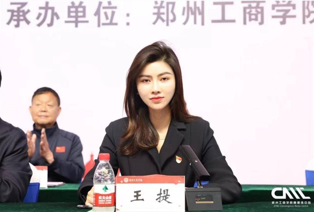 郑爽梳着优雅发型,身穿气质套装,于简约背景前展露淡然微笑