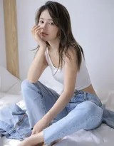 午后休闲时光:宽松白背心搭配修身牛仔裤,勾勒出简约舒适的日常造型,散发着惬意与宁静的生活气息
